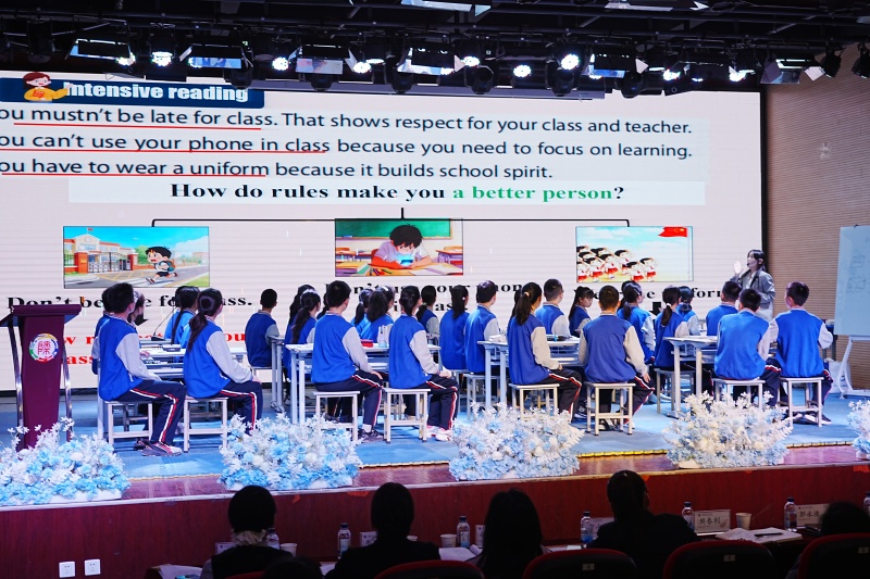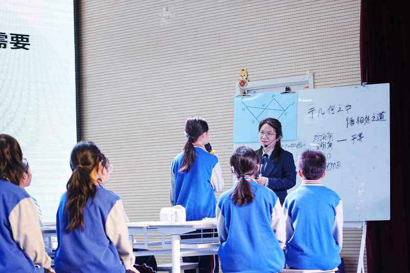 课堂展示中,语文课《品读〈台阶〉——走进父亲奋斗的人生》,以台阶为锚点,引导学生读懂奋斗价值;数学课《于几何之中,悟相处之道》,将相交线、平行线知识与人际交往智慧结合,把几何逻辑转化为生活智慧;英语课《规则助力我成长:How can rules help us?》,以规则为主题,在语言学习中培育规则意识与责任担当。