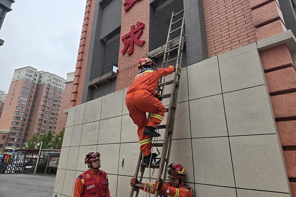 为提升队伍整体战斗力,10月22日,西咸新区消防救援支队创新港消防救援站开展60米肩梯登楼训练。