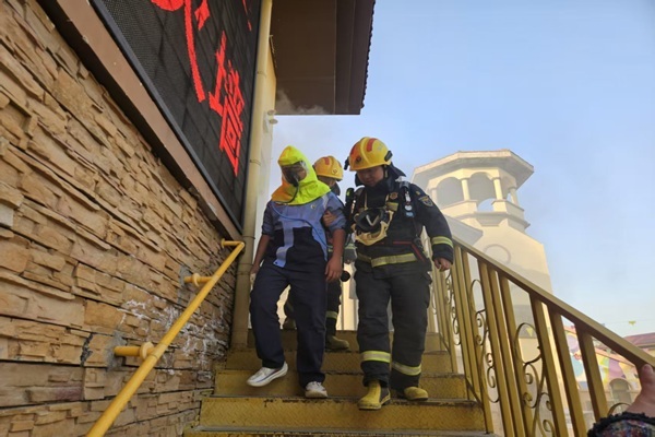 此次演练模拟教学楼二楼不慎发生火灾,烟雾迅速蔓延且有一名学生被困。发现火情后,学校立即按照预定方案引导学生有序疏散逃生并拨打119报警电话。接到报警后,大秦小型站立即出动1辆消防车及6名消防救援人员赶赴现场“救援”。到达现场后,指挥员迅速了解情况,按照战斗编成依次开展侦察搜救、警戒疏散、内攻灭火等灭火救援行动,各战斗小组快速反应、协同作战、密切配合,圆满完成了此次演练。