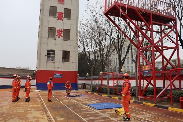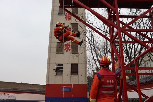 为适应复杂环境下应急救援任务需求,进一步提升指战员在高空等特殊场景下的绳索救援技术水平,近日,西咸新区消防救援支队王寺东街消防救援站开展绳索救援上升与下降训练。