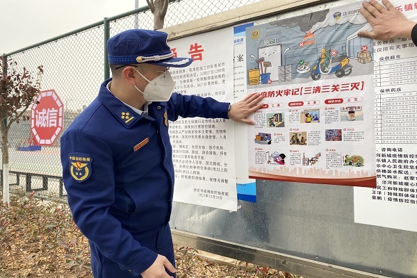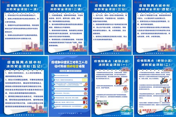 暖心覆盖宣传。“线上+线下”对小区物业、社区工作人员进行消防安全培训。定期通过电话、微信联络群等对居家隔离人员进行消防安全提醒,在新媒体平台广泛发布原创“小火亡人”警示片、科普海报长图。宣传人员走村入户,“大喇叭喊话”安全提示,“小嘱托问候”暖心宣传,大街小巷覆盖张贴“小火亡人”消防安全宣传海报,做到消防知识“身边绕”。
