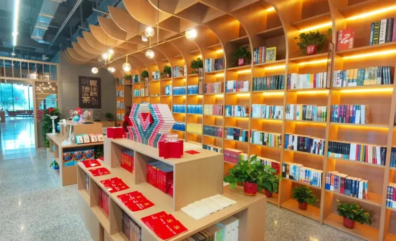 西咸新区新华书店位于能源金贸区金湾大厦A座一楼东北角。书店采用开放式经营模式,目前经营图书1500余种5000余册,提供图书种类涉及党建理论、现代文学、社会科学、中外名著、儿童读物、教辅以及文创产品等。整体格调简约时尚、清新雅致,将打造集党建阵地、阅读分享、亲子活动、文创产品等文化消费业态于一体的城市文化会客厅。