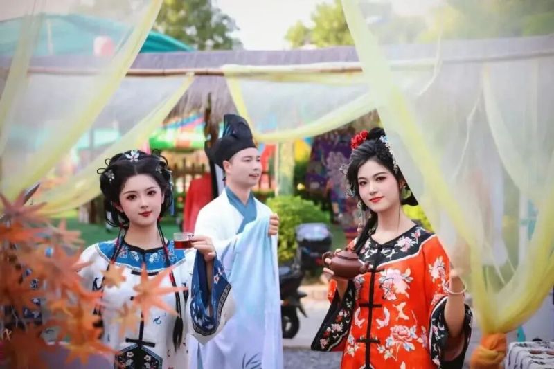 茯茶镇的活动亮点十足。国风巡游中增添游玩趣味、秦腔串演是戏迷游客的首选、互动环节里游客还能挑战特色舞蹈和打击乐。小镇经典“金花婆婆说媒”活动更是热闹,不仅为单身游客牵线,还巧妙融入礼仪、茶韵与非遗文化。夜幕降临,游客可在露天场地欣赏经典音乐,享饮品美食,同时设置桂花、稻草、月亮等氛围打卡点,满足不同年龄层需求。特别推荐的是位于茯茶镇二期的丝路食光・大使馆,这里将唐诗文化融入消费场景,为您复刻丝路盛景。