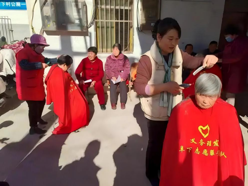 高庄镇阜下村委会院内,爱心理发志愿服务活动正在有序开展。志愿者们一边细致修剪头发、一边与老人们拉着家常。“我腿脚不方便,出门理发特别难,多亏志愿者们上门服务,手艺还这么好。”刚理完发的王大妈对着镜子,满意地点了点头。