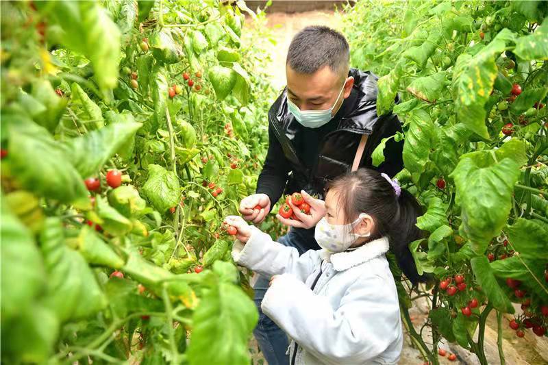 “正好赶上周末,带孩子来体验一下采摘的乐趣。你看,这是我们采摘的圣女果。”来自咸阳的姚先生带着5岁的孩子一边采摘一边高兴地说。