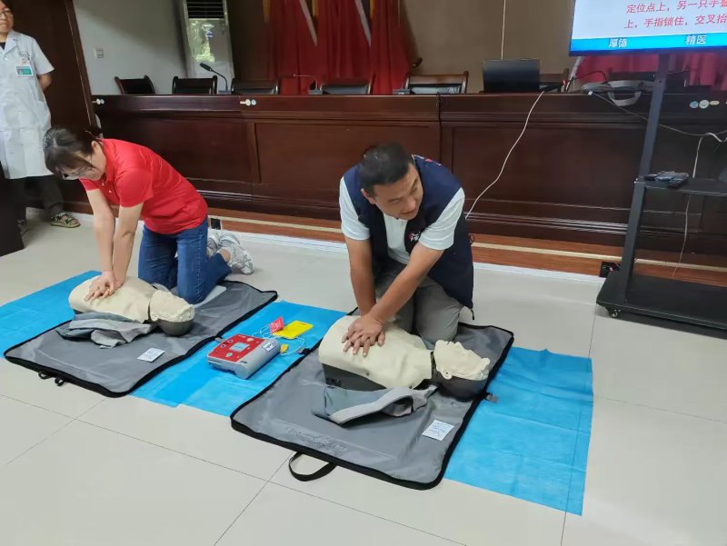 培训设置了现场实操环节,医护人员现场演示,学员现场实操学习,医护人员逐一指导纠正,确保每位学员熟练、规范掌握急救技能。
