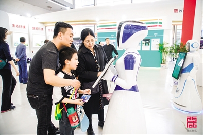 西北工业大学各种型号的无人机也精彩亮相,落户西咸新区沣西新城的翱翔小镇将发展成为全国首个以“空、天、地、海”无人系统产业为核心,科教产融四位一体的科创示范小镇;秦汉新城通过AR技术,让文物活起来、会说话,体验的客商络绎不绝。秦汉新城新丝路数字文化科技有限公司带来的文创丝巾、非遗花丝和秦汉华服等,以文物为基础素材进行创意设计,时尚也有文化;中译语通科技(陕西)有限公司带来的LanguageBox语言盒子、悦译翻译机等智能翻译硬件产品,可支持中、英、德、俄等37个语种与金融、科技、医疗、体育、口语等不同领域的高质量AI机器同声传译,很有科技范儿。