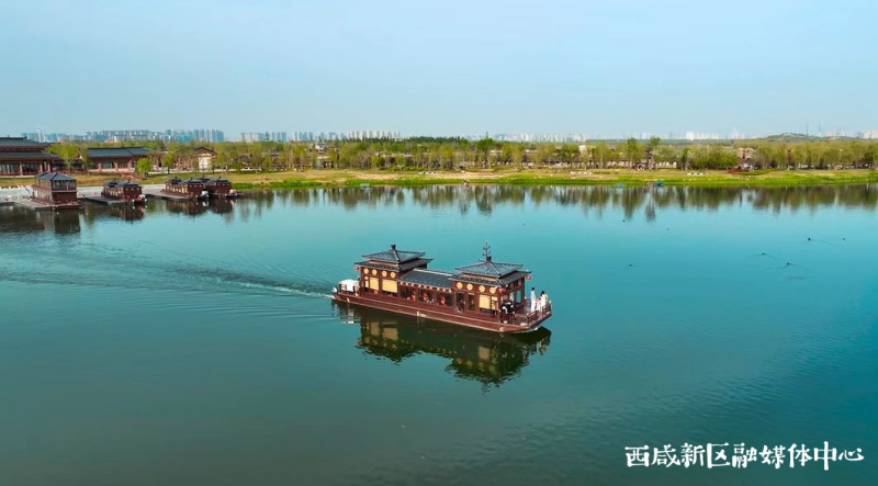 企业家们前往昆明池·七夕公园,乘船考察环北池项目建设,在游船上了解沣东新城整体发展规划、产业布局和最新营商环境政策,感受沣东新城城市建设、自然生态、人居环境的独特魅力。