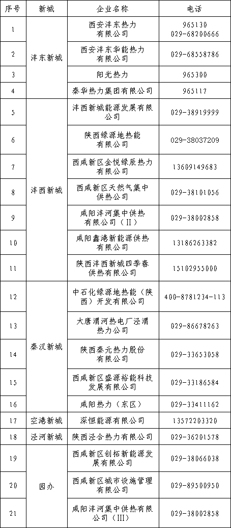 西咸新区现有集中供热企业20家,其中热电联产4家,燃气锅炉供热6家,地热能3家、中深层无干扰供热7家。本采暖季供热面积约2400万平方米,其中分布式供热面积986.29万平。热力主管网长度169.12公里,完全能够满足辖区供热需求。