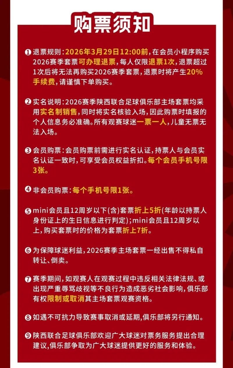 3月26日,陕西联合足球俱乐部正式发布2026赛季中超联赛主场套票销售计划,将于3月27日上午10点陆续开启套票申购。