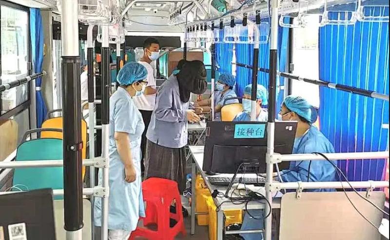 为方便群众就近、便捷接种新冠疫苗,西咸新区不仅优化了接种点布局设置,还利用公交车资源在部分社区、地铁站、商场、机场等人流较大区域增设了流动接种点。