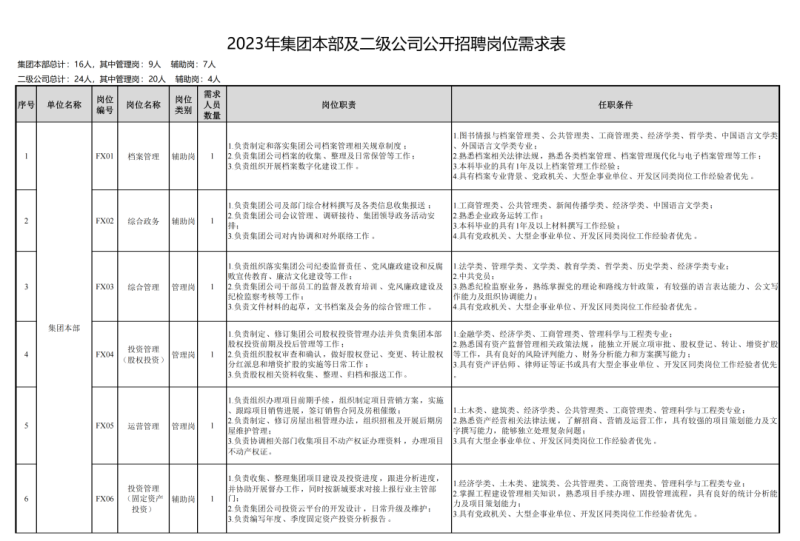 附件:1. 2023年集团本部及二级公司公开招聘岗位需求表