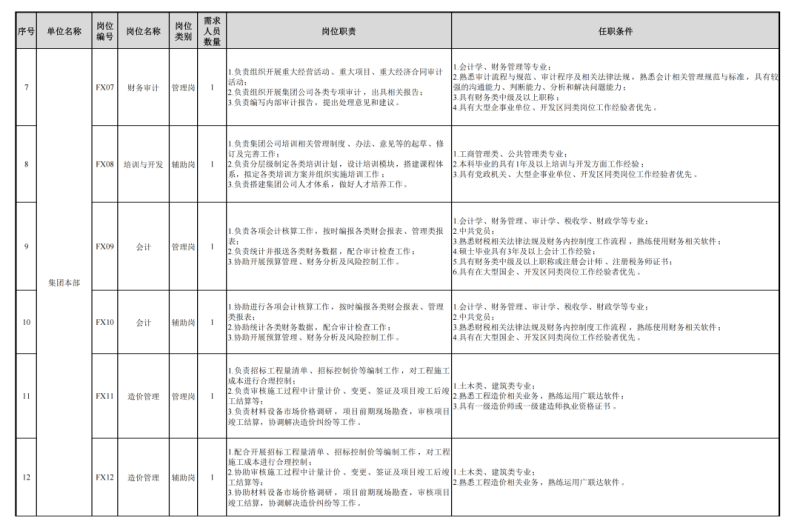 6.应聘人员在符合以上基本条件的同时,还应符合所报岗位任职条件的有关要求,特别优秀者可适当放宽条件。岗位所列专业要求本科或研究生专业任一满足即可。集团本部及二级公司招聘岗位及任职条件详见附件1。