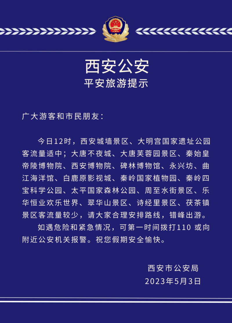 西安公安平安旅游最新提示