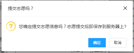 全部志愿信息输入完毕后,必须点击“提交”按钮,否则服务器无法接收到志愿信息。全部志愿确定无误后,必须点击“确认”按钮。在点击“确认”按钮之前,可以任意修改所填志愿。