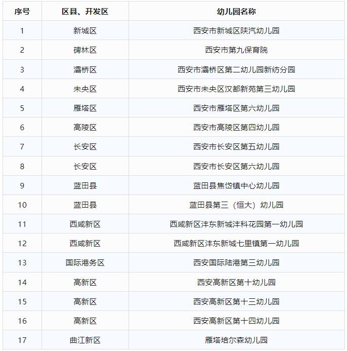 2023年上半年拟认定西安市一级幼儿园园所名单