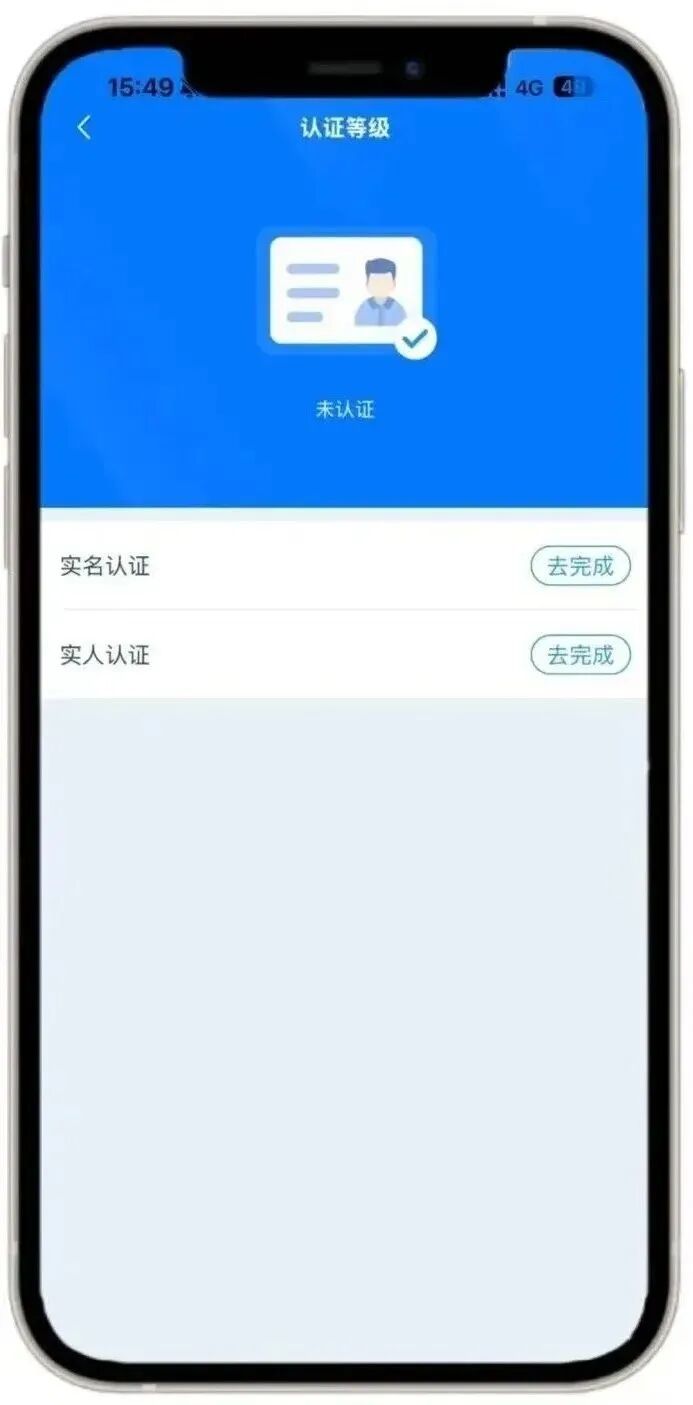 点击【我的】完成注册、登录并实名、实人认证。