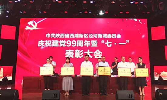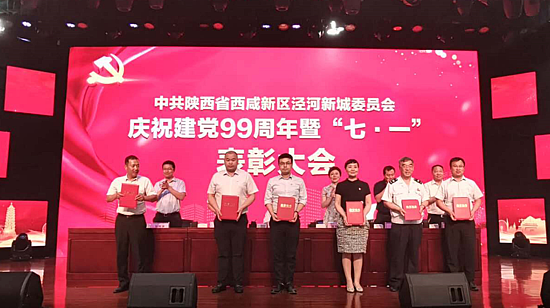 为了进一步表彰先进,树立典型,激励广大党员、干部继续发扬党的优良传统,增强基层党组织凝聚力、战斗力和创造力,保持党的纯洁性和先进性,6月30日,西咸新区泾河新城召开庆祝建党99周年暨“七一”表彰大会。西咸新区党工委委员、泾河新城党委书记、管委会主任张宏伟出席大会并讲话。泾河新城党委委员、管委会副主任任炳群主持,泾河新城党委会班子成员贾少龙、徐满、刘高波,以及泾河集团党委书记、董事长张鹏飞参加会议。