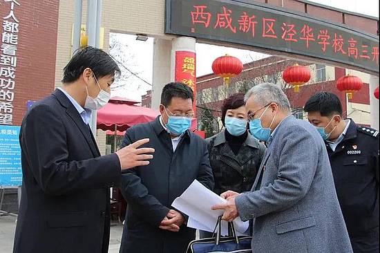 3月27日,西咸新区党工委委员、泾河新城党委书记、管委会主任张宏伟一行调研辖区高三年级学生开学复课前准备工作,并观摩西咸新区泾华学校疫情防控应急演练,确保学校安全有序开学。泾河新城党委委员、管委会副主任任炳群陪同调研。