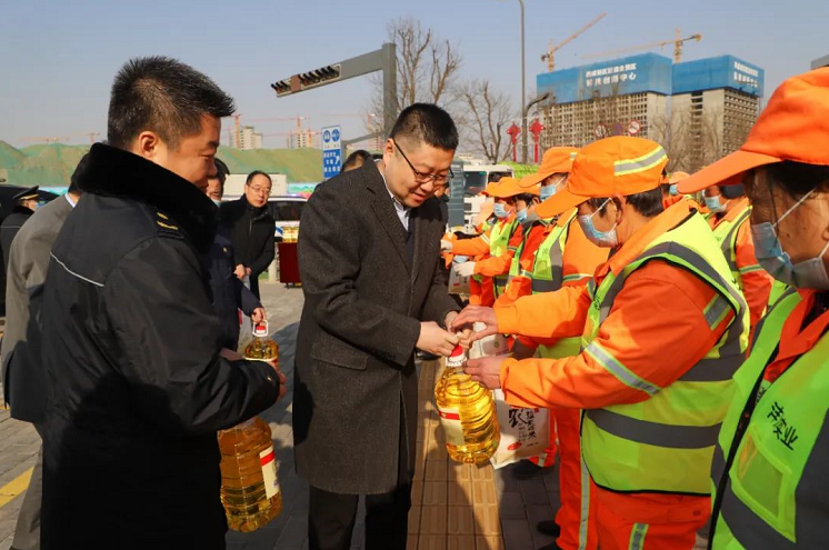 在驻地派出所、消防大队和景区,看望了辖区民警、消防队员及保洁人员代表,为他们送去米面油、水果等慰问品,感谢他们在改善园区城市环境、提升城市形象、维护社会治安等方面做出的积极贡献,为园区经济发展、社会和谐稳定提供了有力保障。希望大家在新的一年里,继续发扬优良作风,以更高的标准、更大的干劲投入园区开发建设和城市精细化管理,为大西安新中心新轴线建设做出更大的贡献。