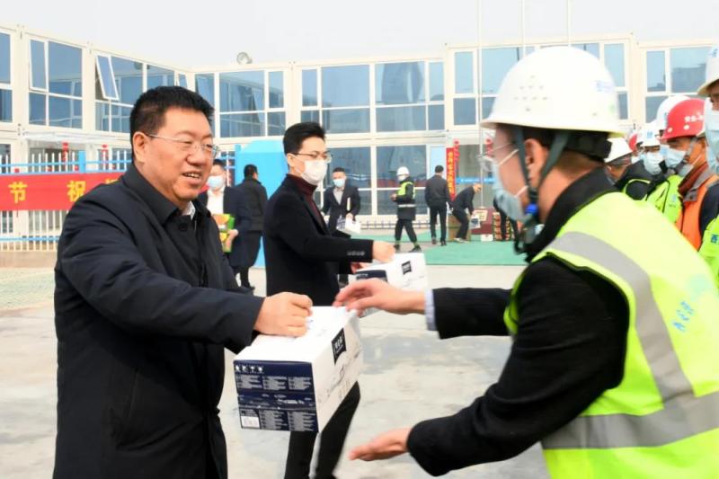 在泾河新城体育中心项目现场,张宏伟与一线建设工人亲切交谈,详细了解他们春节期间生活安排。他说,广大建设者坚持春节在岗建设不停歇,非常让人敬佩,施工单位要关心关爱一线劳动者,确保大家度过一个欢乐祥和的春节。