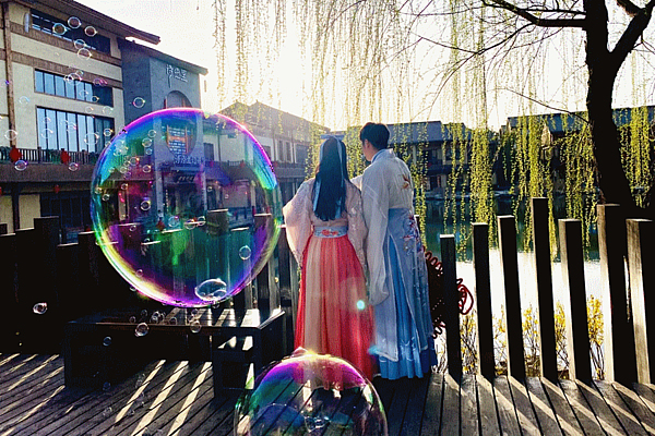 踏青时节,穿汉服拍照打卡成了近年来春季旅游新风尚。作为全国首个以诗经文化为主题的特色小镇,这里常常举办各种以诗经为主题的活动,“汉服巡游”几乎成了每个节日的必备活动。诗意浓浓的氛围总是吸引不少汉服爱好者来打卡。