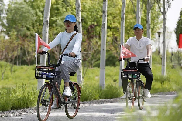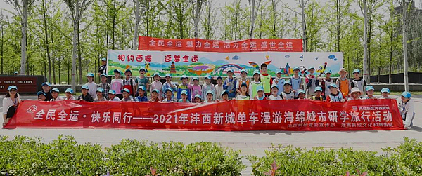 5月1日,沣西新城举办“全民全运•快乐同行”——2021年沣西新城单车漫游海绵城市研学旅行活动,来自西安、咸阳约35组家庭、70余人深度体验海绵城市魅力。
