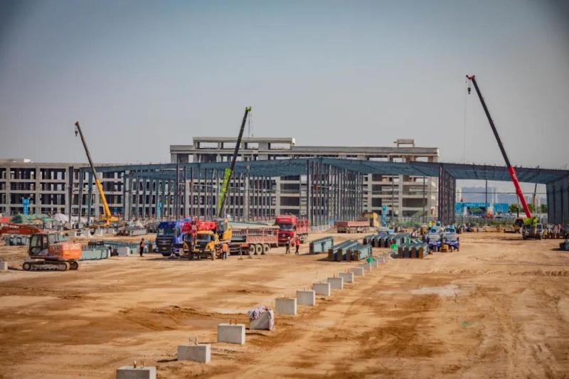 在大地原点的不远处,隆基光伏热火朝天的施工现场吸引了摄影记者们的注意,工人们正在紧张有序地进行项目施工作业。西安晚报摄影记者翟晓雪说,这是她第一次来到泾河新城,没想到泾河新城的发展这么快,隆基光伏这么重大的项目能落户泾河新城,这对新城以及陕西的发展是非常重要的。