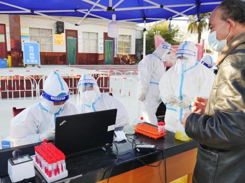 已经连轴转了4天没停歇,永乐镇卫生院办公室主任贠景强依然坚守在检测采样一线。从20日一大早开始的西安市第二轮核酸检测,让他似乎更忙碌了。