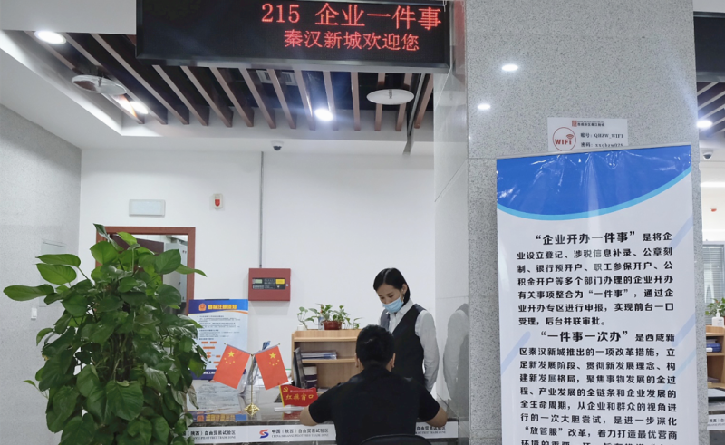 “我们推出了‘联合验收、多测整合、区域评估’等改革措施,将政府和社会投资项目审批时限分别压缩到了58个和28个工作日。”据西咸新区政务服务(秦汉)中心负责人介绍,利用西咸新区商事集成注册平台,秦汉新城实现了企业工商登记、税票申请、公章刻制、社保开户等全流程、全要素一个工作日办结,今年1至6月共新增市场主体18786户,各类市场主体活力得到有效激发。