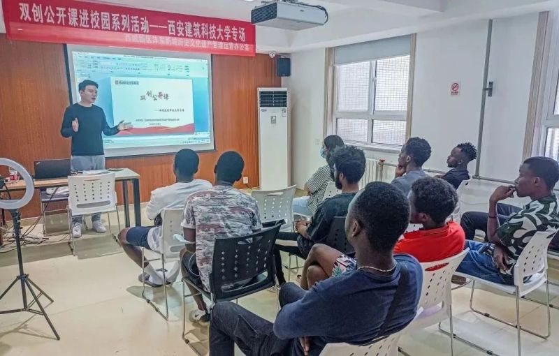 日前,由西咸新区沣东新城历史文化遗产管办开展的双创公开课走进西安建筑科技大学。作为服务国际留学生创新创业的一次创新探索,双创公开课通过云课堂、高校宣讲、人文交流活动等形式,面向在陕留学生开展就业创业政策宣讲、企业经营等服务。