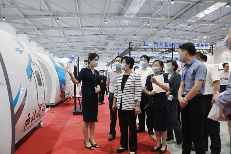 开幕式后,与会嘉宾共同巡馆,近距离和参展人员交流,了解产业发展动态。在西咸新区展区,西安鲲鹏易飞无人机科技有限公司的展品吸引了大家注意,工作人员详细介绍了各类无人机的技术优势和应用场景。在西北航空训练公司展位前,嘉宾也频频驻足询问,了解航空服务培训所需的各类设备用途,观看相关流程的演示。