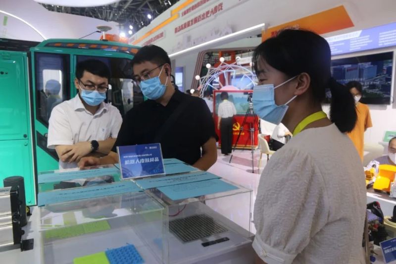 作为陕西省首家集研发、销售及工程应用于一体的特种工程机器人企业——中建建乐智能机器人股份有限公司的展台也是格外热闹,新颖的机器人皮肤引来不少观众围观。