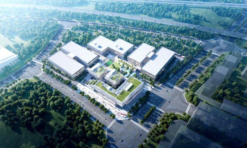 项目主体目前采用流水分段施工,四栋生产厂房中,一栋已封顶,一栋已施工至顶层,其余两栋正在进行地下室筏板钢筋铺设,综合办公楼施工至地上一层,预计2024年初建成投用。