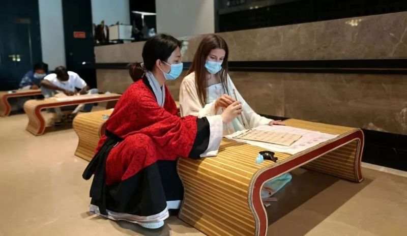 由礼仪老师讲解教习秦代的“立容、坐容、行礼、迎宾、宴请”等礼仪姿势。