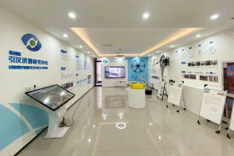 走进沣西新城陕西引汉济渭科技发展有限公司的展厅,一架架形态各异的无人机映入眼帘,其中最引人注目的是一架白色大型无人机。