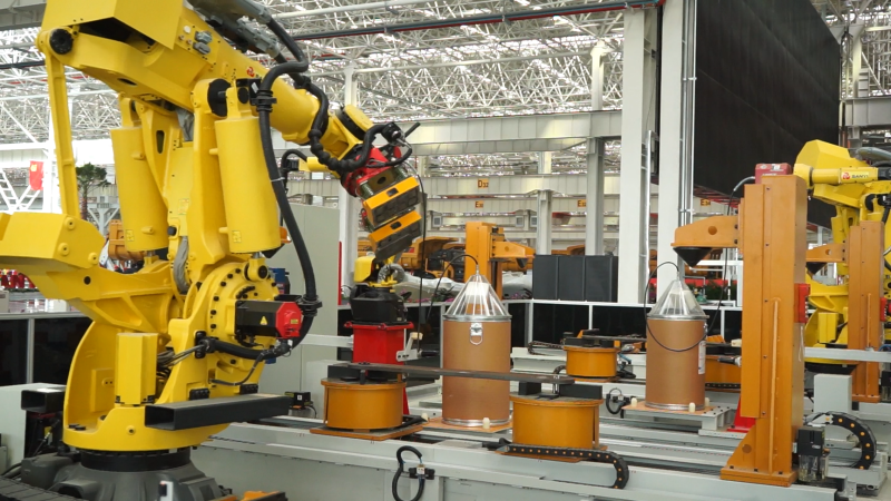 生产机器人挥动着手臂,数据管理系统大屏上数字不停地跃动着……位于西咸新区沣西新城的三一智能装备有限公司智能制造产业园宽敞明亮的生产车间内,一幅生态与生产交相辉映的和谐场景让人赞叹不已。