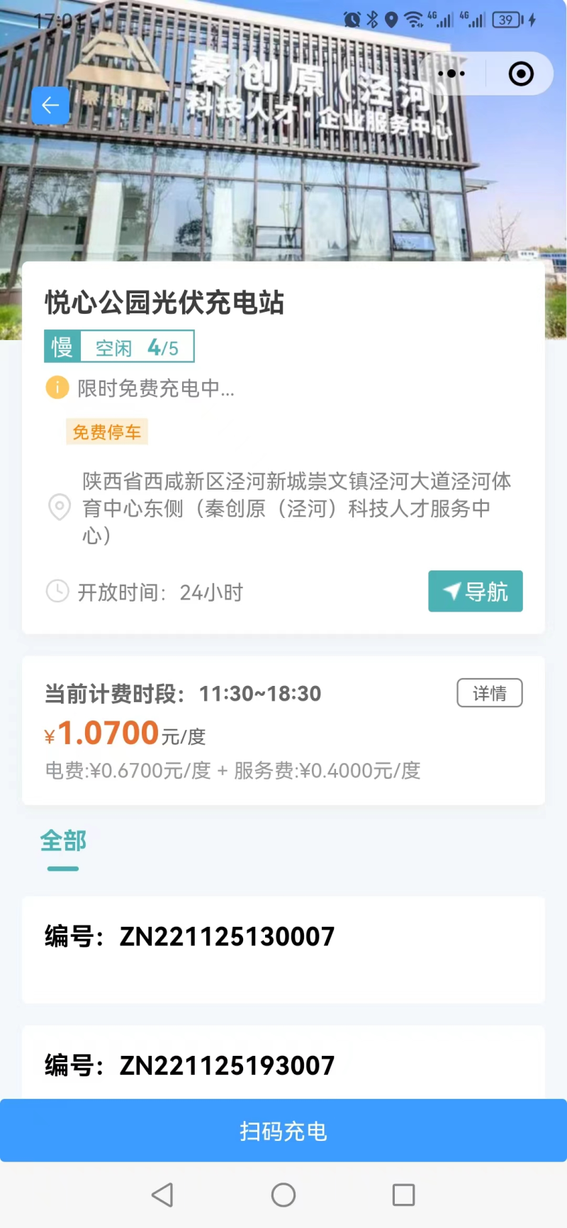 使用期间,用户可通过“泾彩online充电桩”微信小程序,依靠手机终端扫码支付自助选择线上充电预约、自动充电控制、电动车多重保护、实时计费等操作。辖区的企业人才,还可享受免费充电2小时礼遇。
