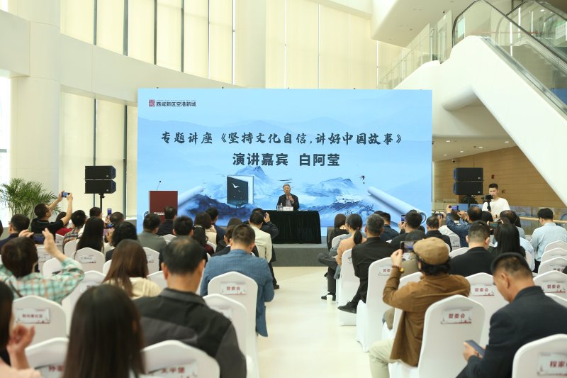 专题讲座邀请了陕西省原副省长、陕西省决咨委副主任白阿莹,以“坚持文化自信 讲好中国故事”为题为大家进行讲述。他将中国传统文化精髓结合身边事物娓娓道来,深刻诠释中华民族的文化自信。他讲到,历史文化遗产是历史最好的见证,更承载着一个民族的精神与灵魂。在场人员纷纷表示,通过此次讲座,对于如何重拾文化自信、守护中华文明有了深刻的感悟。