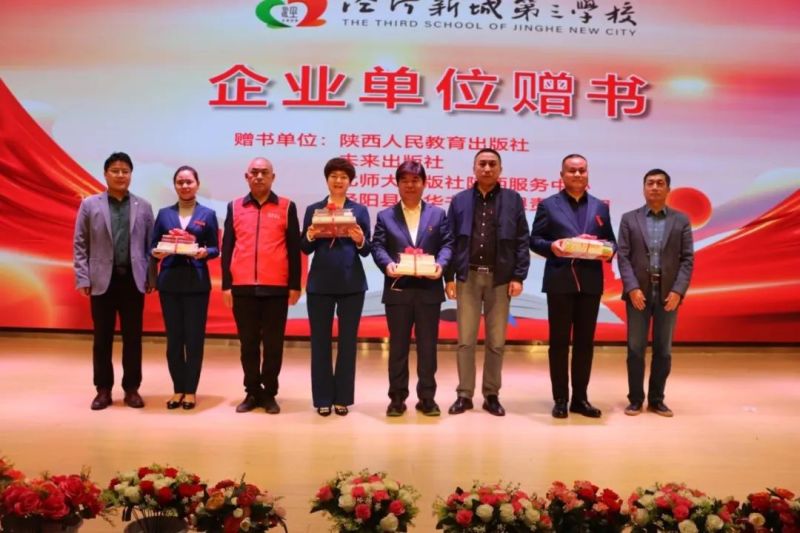 传出一份情,送出一本书,成就一个梦。当天,陕西人民教育出版社发行公司,未来出版社发行公司,北师大出版社陕西服务中心,泾阳新华书店有限责任公司给泾河新城第三学校捐赠上千余册书籍,承载着爱心的书籍撒播着知识的芳香,丰富师生的文化生活。