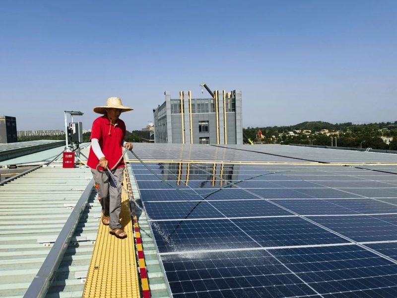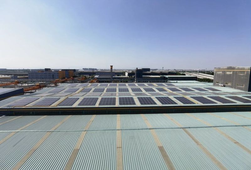 厂房的屋顶能用来做什么?能发电,能生“金”!安装太阳能电池板,发的电可以自用,降低企业用电成本,用不完的还能接入电网,获取收益。而且,整排的光伏板架设在屋顶,又能起到防晒网的作用,降低生产车间室内温度,让工人们在炎热的夏季减轻“蒸笼”之苦。