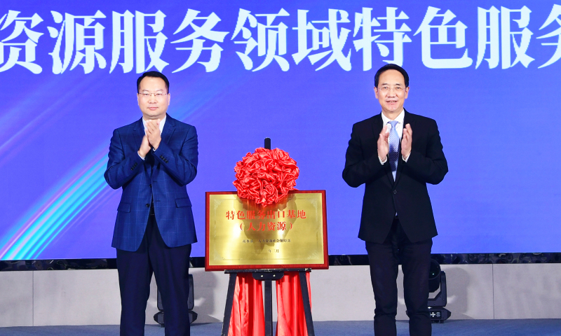 西咸新区党工委书记杨仁华、省人才交流服务中心主任梅晓刚共同为国家级人力资源服务领域特色服务出口基地揭牌