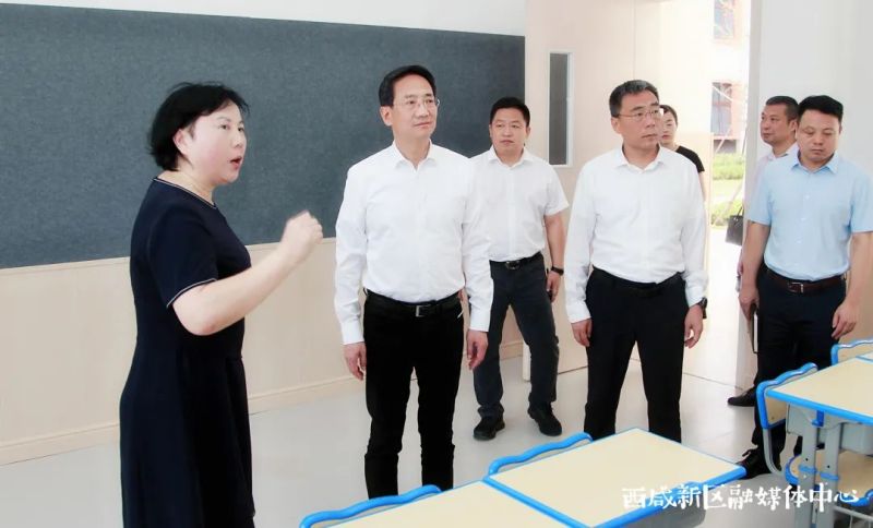 杨仁华首先来到沣东新城第一小学,这里教学设施已经到位,校园环境洁净优美。杨仁华深入教室、操场、图书阅览室等处,详细了解学校办学规模、师资配备、智慧校园建设等。随后,杨仁华来到沣东新城七里镇第二幼儿园,实地察看幼儿园功能部室,听取招生规模、生源状况、软硬件配备等情况。西咸新区第二小学、西咸新区第二初中位于能源金贸区文教园片区,周边环境品质高、硬件设施配备先进,工程建设已基本完成。杨仁华来到这里,观看两校功能布局沙盘演示,在教室、风雨操场等处察看校园功能布局。