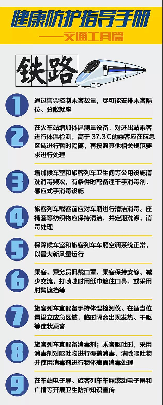 面对新型冠状病毒感染的肺炎疫情,不少人度过了最长春节假期。随着开工时间的临近很多人也即将重返工作岗位,小编为您贴心准备了不同人群、不同场所和不同交通工具健康防护指导手册,非常时期助您全方位守护健康!