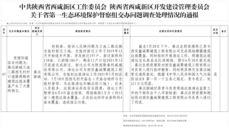 关于省第一生态环境保护督察组交办问题调查处理情况的通报