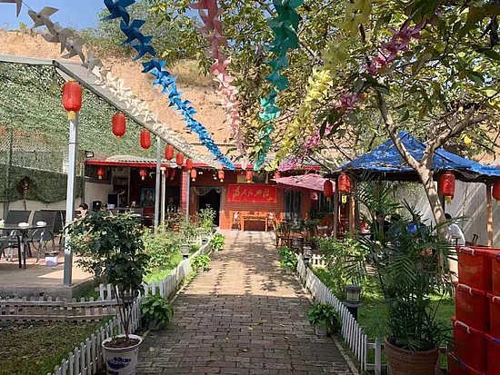 随风旋转的彩色风车挂满农家院子,木制凉亭下摆放着用餐桌椅,院落一角精心布置有绿植盆栽,进入年代久远的窑洞内部,冬暖夏凉,清爽宜人。