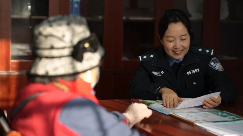 在老年活动中心,第艳妮的微型反诈课从不缺听众。“叔叔阿姨,有人说您孙子出事要急用钱,可得多留个心眼!”朴实的话语如同拉家常般入耳入心。十来分钟的“见缝插针”式宣传,比正式会议更具实效。而在孩子们眼中,这位“警察姐姐”格外亲切——她会主动蹲下身,认真回应孩子们“你的枪呢”“抓坏人怕不怕”的稚气提问,用温柔与耐心,在孩子们心中种下信任与安全的种子。