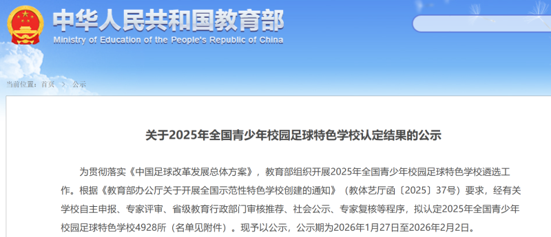 近日,教育部公示2025年全国青少年校园足球特色学校认定结果,陕西省西咸新区沣东新城第四小学、西咸新区沣西新城第四学校、西咸新区泾河新城第一中学成功上榜。