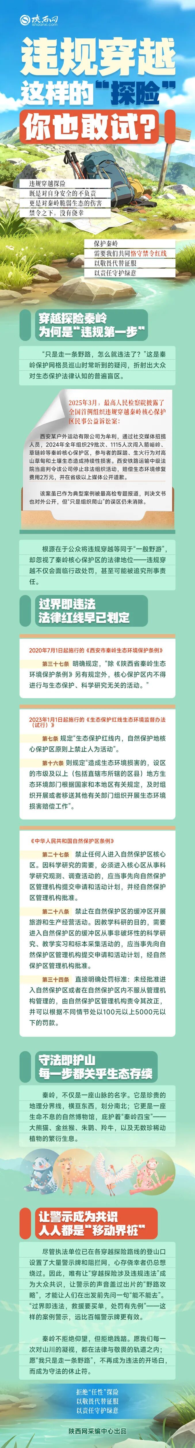 违规穿越探险,既是对自身安全的不负责更是对秦岭脆弱生态的伤害,禁令之下没有侥幸,保护秦岭需要我们共同恪守禁令红线,以敬畏代替征服,以责任守护绿意。