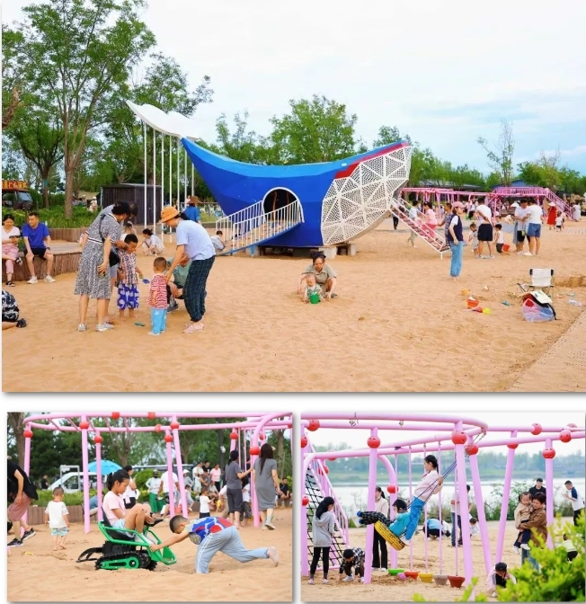 遛娃党必冲:鲸鱼滑滑梯、粉色攀爬架让孩子尽情撒欢,还能挖沙、捞小鱼、打水枪(记得多带一套换洗衣物,穿防滑鞋避免滑倒)。